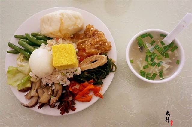 今天的早餐还是在酒店,同昨天一样的自助餐,主食跟昨天一样,菜有些变化,我又装了满满的一盘。