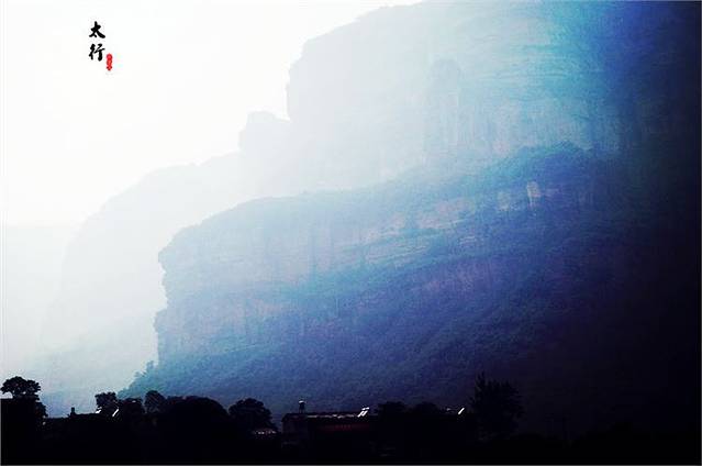 傍晚的太行山不像白天那么阴,已经渐渐放晴,夕阳暖暖的余晖打在崖壁上。