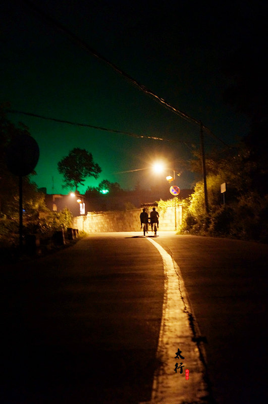 晚上有很多人租自行车,骑夜路,但镇上的路灯设置有限,
