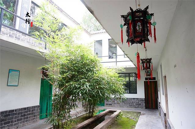 一座古色古香的建筑,依地势而建,前对青山,左攀缓坡,右骑岩石,后临河谷;