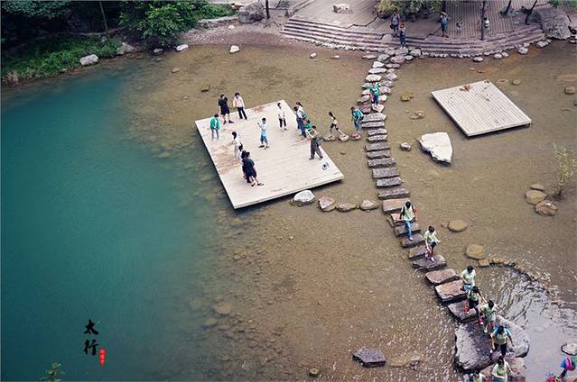 先在漂流的下游终点买票,换衣服,然后坐景区大巴车前往漂流的上游