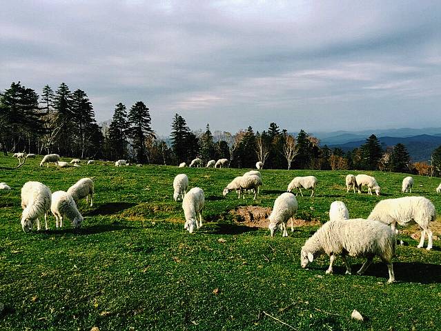 老秃顶羊儿悠闲地吃草