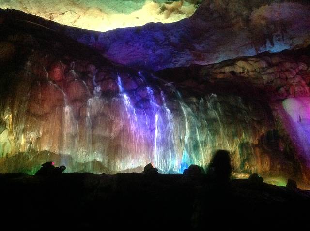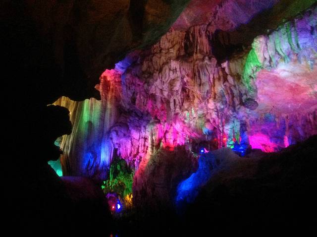 没看过钟乳石前,以为这些颜色都是钟乳石天然的颜色,熟不知是霓虹灯照射出来的。