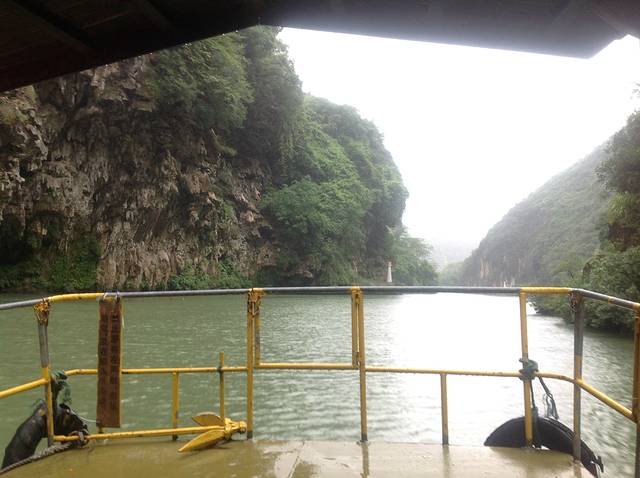 由于之前我已经去清远游过北江,所以觉得这次的湟川三峡不如那次游北江好,游北江的那次,在船上的时间都有一个多小时,整个湟川三峡下来包括来回,也就是一个小时的时间,再加上正好那天下雨,在船上吹着风,好冷啊,一个个的都后悔没带长袖的出来。