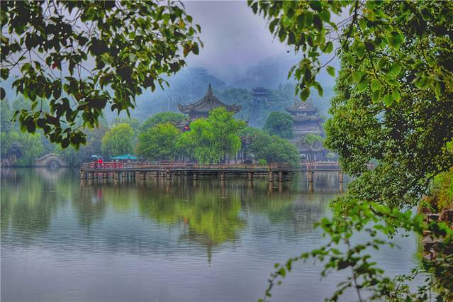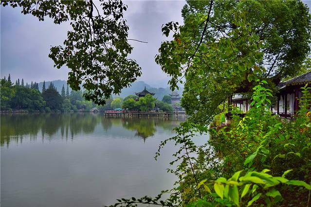 初秋时节,微风细雨,走进临海东湖,亭台楼阁,水榭长廊,高瓴流瓦,翘角滴翠,一步一景,步步生情。