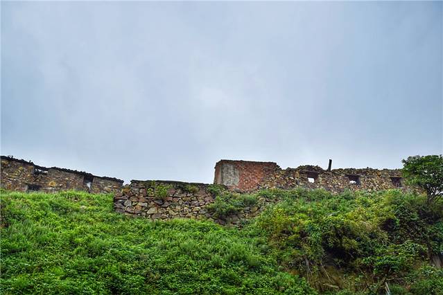 散落分布的石头屋,在空旷的山里,显得格外苍凉