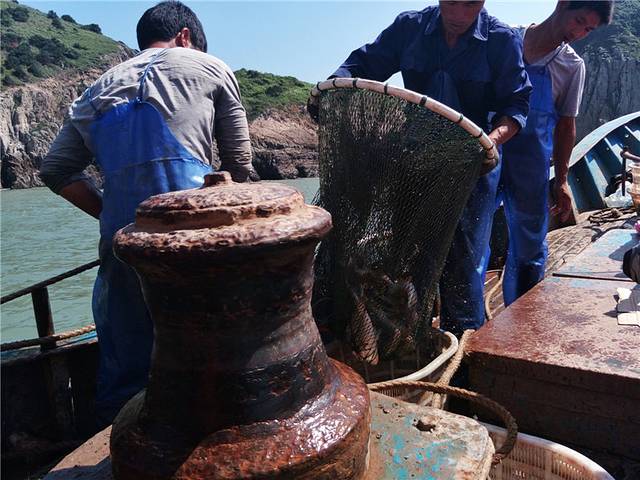 同南岙岛一样,这里除了海鲜,很少有其他的蔬菜肉类,海鲜种类很多。我们还跟着渔民大哥们出去捕鱼,网是3天前已经洒好了的,做好记号,到了时间收网,网里的鱼有虎头鱼,石斑鱼,黄鱼,三刀鱼等等,挺漂亮的,渔民大哥们看着收获甚丰,都乐呵呵的。