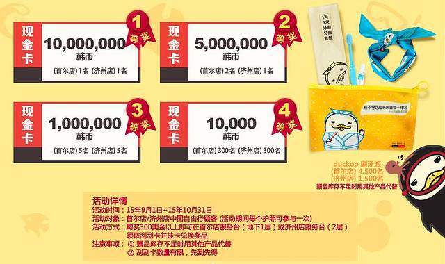 SHINEE手上的牙刷套具是新罗目前活动在赠送的。屈臣氏是九月份的活动没赶上,新罗免税店*DUCKOO活动进行到10月31号。赶上中秋和国庆,来韩国旅游的中国旅客也不少,大家也肯定不会放过免税店,所以就给大家说一下关于新罗免税店可以多拿的优惠的一些小诀窍