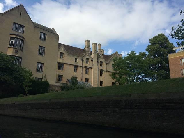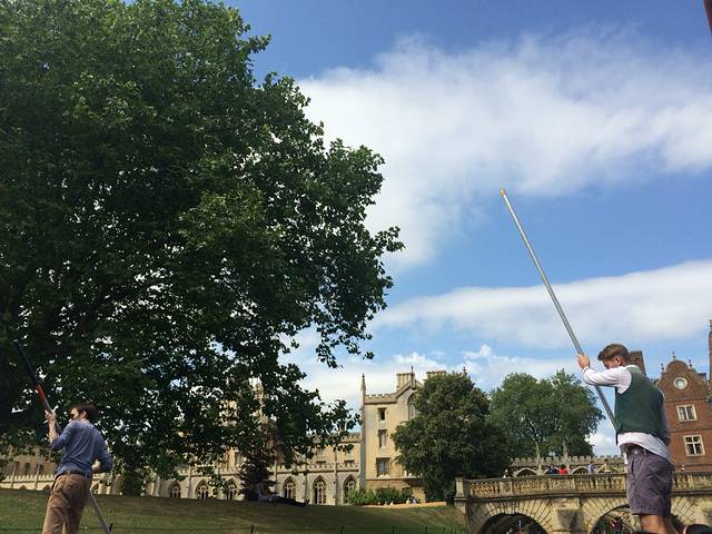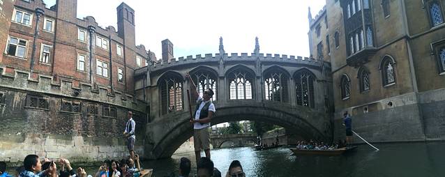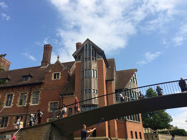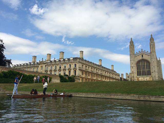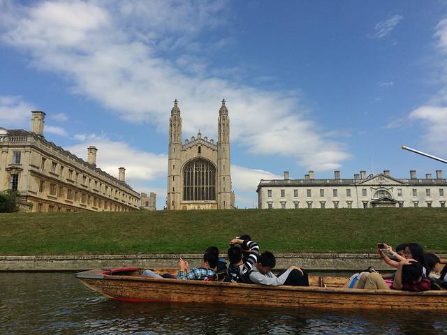 不同于中国的大学在城里,剑桥大学就像是一座城。繁华街口,商铺林立,每一角都是风情。城里有很多绿地,走得倦了,便可席地休憩。上午先在各个学院前走走停停,下午就集体去游船,从船上视角领略河岸风光。从下往上地观望,便是另一番感受