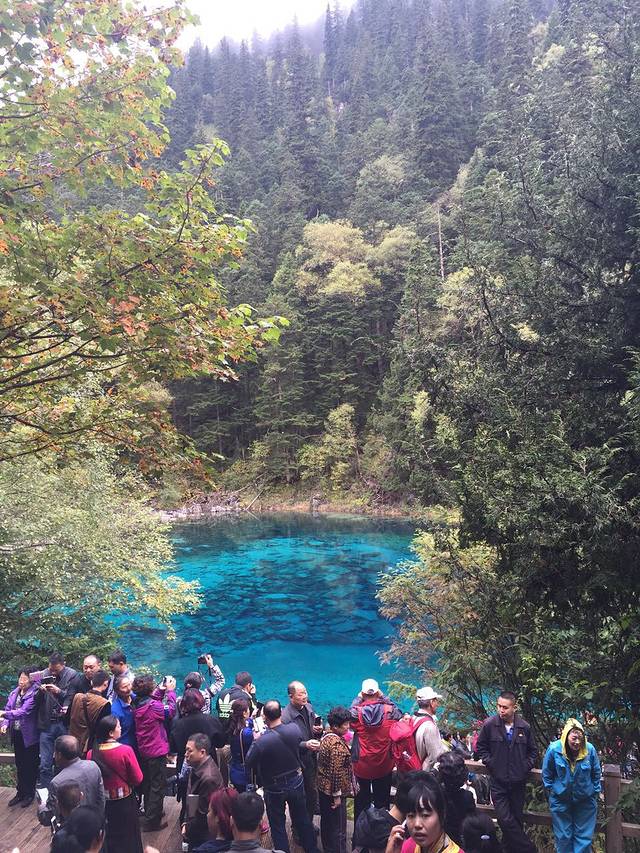 早上5:30就集合出发去九寨沟,7:45到了九寨沟沟口,一直排队到9:10才进去,九寨沟每天限流四万一千人,我们那天导游说只有两万人,可是已经感觉到处都是人了,进去之后有公交车带着到每个景点,大亮亮不想排队坐公交,我俩就一人花了210元租了辆VIP车,说是VIP,其实就是一车20个人加一个导游,然后这辆车带着逛景点,保证每个景点都玩到,不过我觉得挺值的,导游很好,每个景点都会给你留出足够的时间来玩,而且也不用走很多路,随身的东西也可以放在车上(公交车是不可以把东西留在车上的),一天玩下来一点也不累,而且还所有的地方都玩到了,推荐如果费用允许的情况下,可以包车,就是在排队坐公交的时候旁边有人会说包车,就是这个。