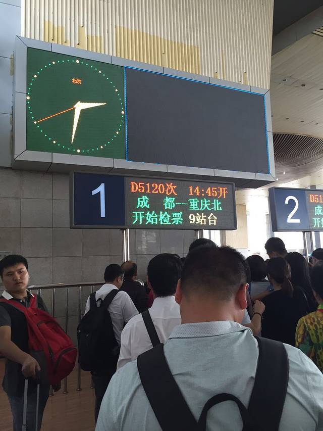 火车:成都-重庆北(D5120)定的时候都卖的差不多了,所以买的下午2:45的,5:08到的重庆