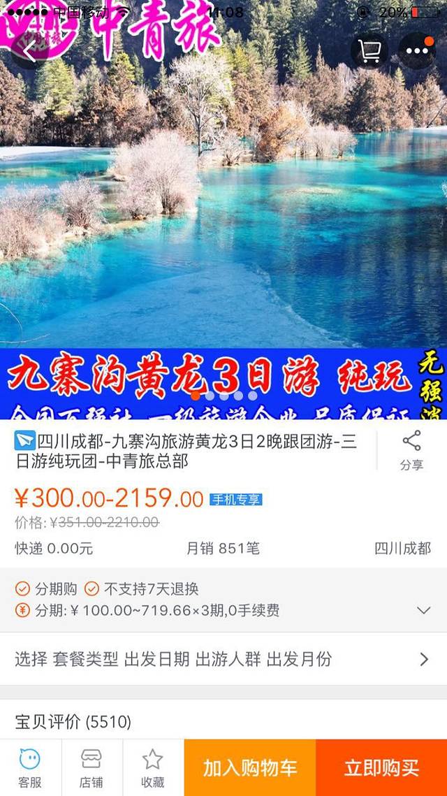 之前我先在淘宝上报的黄龙+九寨沟的团,找了个评价好的,报了个价格相对高的,事实证明价格高的就是好,建议去玩报团的千万别差那几百块钱,在那边本来就高原反应,各种不舒服,我们报的价格稍微高了一点,就住的好吃的好,听其他团友说他们吃的很不好,根本咽不下去。