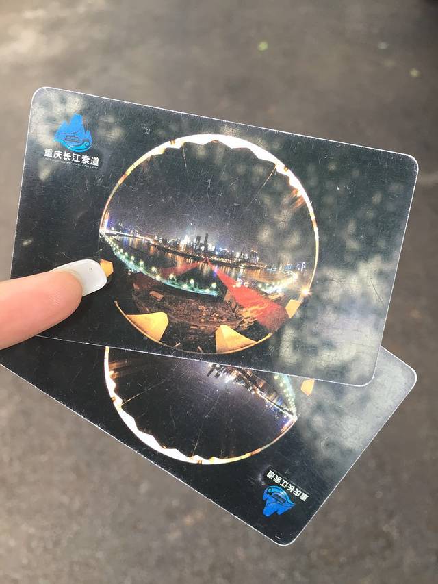 我们六点左右从磁器口出来,准备去朝天门码头,我们提前在团购网上团了两江游船的船票,一个人48元,友情提示,想要两江游的小伙伴们一定要提前在网上买票,不然船票有可能就是100+哦~我们坐轨道交通1号线,坐到小什子下来后,打了个小车15块把我们送到了码头,对了,从小什子下来后千万不要打出租车,不要问为什么!听话就可以!我们到指定地方换好了票就登船了,七点半开船,我们七点就上船了,我很后悔没在下面买点吃的喝的,船上各种贵啊,船票是没有限制的,坐在哪一层都可以,但是我强烈推荐最高层,因为视觉效果实在是太棒了,如果想有座位,一定记得早登船,我们七点登船的时候还有一些坐的位置,后来上船的人,想坐都没有地方坐了,顶层还要收30块一人的茶位费,非常坑爹,但是为了美景只能忍了。。。一直到八点船才开,那景色,怎一个美字了得。。。非常非常非常美,在上面吹着小风,看着美景,喝着不怎么好喝的茶,实在是太舒服了!船开了差不多45分钟就靠岸了,之前上船的时候,我看到有很多预留的位置,于是下船的时候我就问了服务员怎么预留,服务员给了我一张他们经理的名片,说给经理打电话买票就可以了,经理名片见下图。