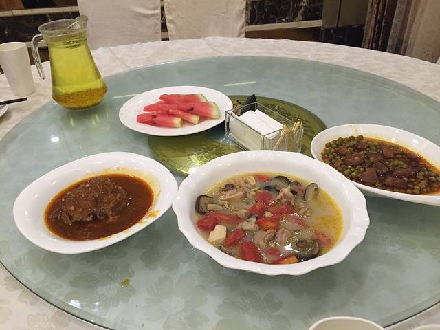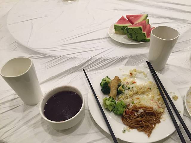 我们的晚饭,还没拍全,四个人一共四菜一汤,还有水果,很好吃