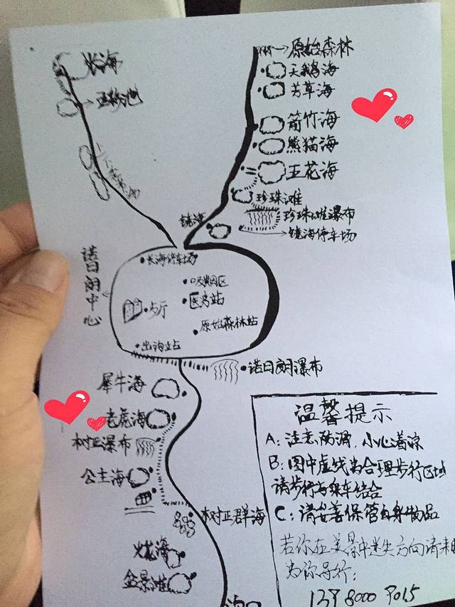 导游的手绘九寨沟地图