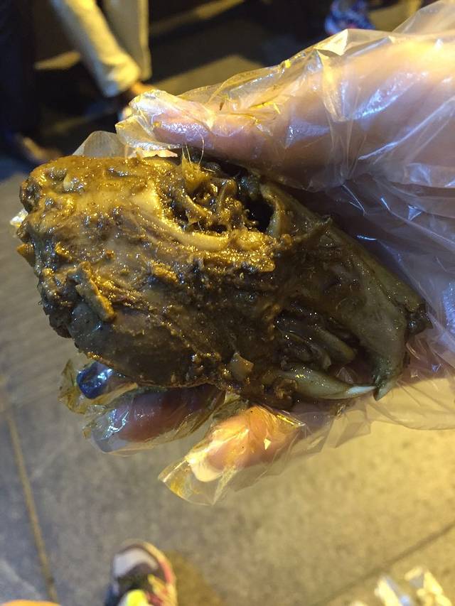 到了收拾收拾我们下去买了几个兔头(7元每个),准备带到火锅店去吃