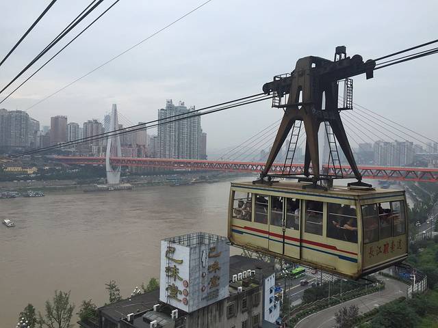 亮哥一直对《疯狂的石头》里的东西比较感兴趣,于是我们决定要坐一次长江索道,早晨十点,我们睡饱了之后就坐公交来到了长江索道的地方,路上吃了我在重庆吃过的最好吃的东西——重庆小面!只是随便在路边找了家面馆,点了碗5块钱的小面,真的没想到那么好吃!!大亮亮比较能吃,要了碗大份的,我们两个人一共才11块,吃的都快撑死了,巨好吃!我总结出来如何找好吃的重庆小面呢,诀窍就是在大街上走,看到哪家面馆里的人多,那他的小面一定好吃!哈哈~吃完之后我们走到了长江索道的地方,索道口不是很好找,我记得好像是在个上坡的小岔路上,因为索道口离我们住的地方有一段距离,所以我俩只买了单程的索道票,一人10块钱,体验了一把疯狂的石头,我本来以为这个索道就像山上的那种索道一样,六个人一辆,都可以坐着的,结果没想到竟然是站着的,而且还是超级多的人站在一个大箱子里,感觉不是那么美好。