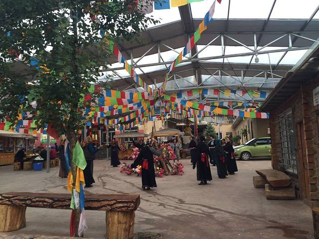 中午的时候,我们到了风情街,其实就是让导游赚钱的地方,各种卖东西的,有藏红花,有玛卡,还有各种吃的玩的,值得逛一逛,我们在那买了些特产带回来,大亮亮买了点玛卡,虽说比外边便宜,可是买完了感觉还是很贵。。。中午在里边吃的自助餐,味道不怎么样,吃完逛完我们就往成都返回啦~