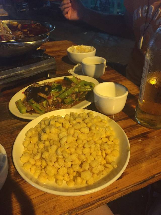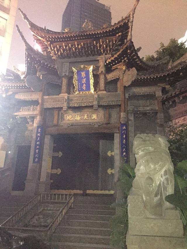游完船已经快九点了,我和大亮亮都饿成干了,下船之后,亮哥非说离那不远有之前拍疯狂的石头的那个寺庙——罗汉寺,于是我们百度地图了一下,陪亮哥去找他的罗汉寺,艰辛的历程啊!!!我们足足走了半个小时的大上坡才找到,找到之后亮哥竟然说不太像,我真是醉了。。。我们在门口拍了个照,就匆匆忙忙找吃的去了,在罗汉寺的那条路上,我们找了家大排档就开吃,事实证明,在重庆要想吃好吃的,就往人多的地方钻没错!大排档的老奶奶超级热情啊,给我们推荐了一个蛋黄玉米,实在是太好吃了,酒足饭饱之后我们就回去睡觉觉啦~~~