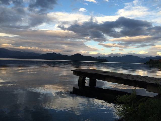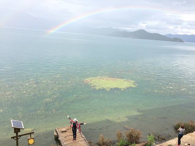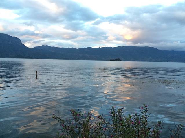 很是写意……下午回到了大落水村 意外的发现有彩虹 而且是双彩虹!!!!晚饭过后 悠闲地欣赏夕阳笼罩下的泸沽湖