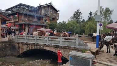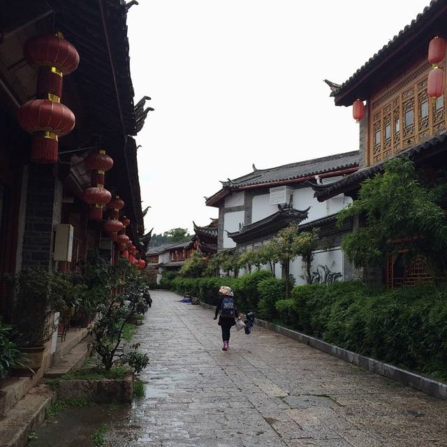 第二天早上狮子山找了一家店来俯瞰古镇全景 需要消费才能拍照 如果不消费人均10元拍照 下午转战束河古镇这是一个比丽江古镇更加悠闲的古镇 本来想去拉市海骑马 可惜时间不够 所以直接在这里骑马了 和马夫还价后 我们用100块的价格骑马游茶马古道和绕古镇一圈 这里的茶马古道是一段山路 加上天雨路滑 我们上到半山就放弃 想想都后怕