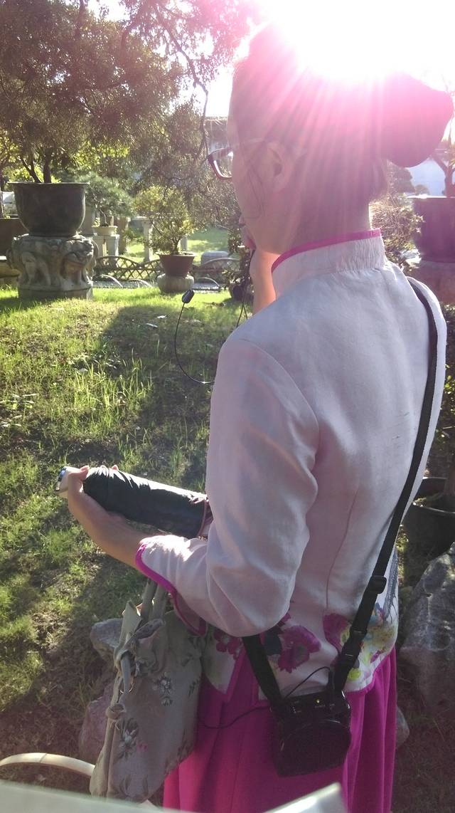 我就不PO和妹子的正面合影了。好喜欢妹子的古典小包~还很细心的带一把伞,可能是为了防止下雨,妹子的声音一般都很温柔,不会太大声,所以想听仔细一些就要跟在妹子身边~而且一定要记得在游客中心拿一张拙政园地图。