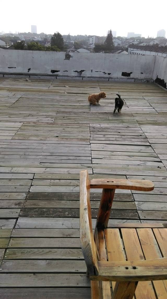 楼上有个大露台,黄毛狗狗是粘人的欢欢妹妹,黑毛狗狗是调皮的果果哥哥,最后一天走的时候我想和他俩告别,一大早就把他们从笼子里放出来了。。。真是给你们添麻烦了。。。