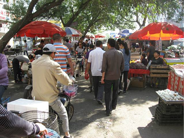 我们昨晚吃饭的馆子“鸿起来”在最北边。我们上午要去曙光市场,决定中午回来,找其中的一家吃午饭。