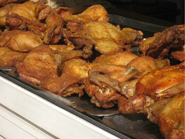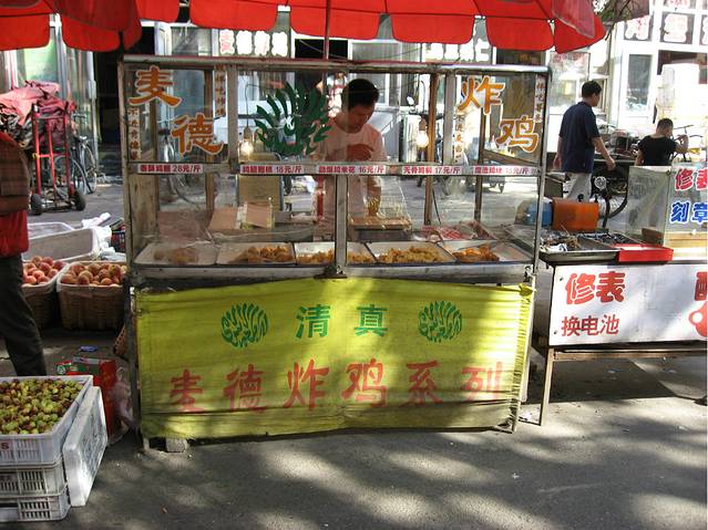 西北角路口上有家“小李烧鸡”,算是当地名吃,买回京尝尝,确实不错,肉酥骨软,风味独特。