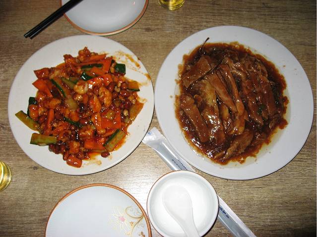 还要了一个宫保鸡丁(13元),因为怕喵喵吃不惯清真菜。事实证明,喵喵是很得意清真菜的!而这道宫保鸡丁却有点不太出彩啦。味道不是特正宗,和四川的做法以及口味都有一定的距离。偏辣,酸甜口不够,原料的块偏大,也许是改良啦?好在价格还算实在。
