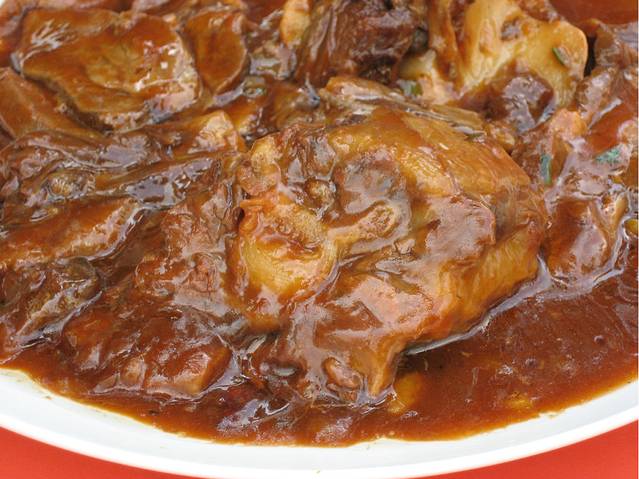 近一点儿看看红烧舌尾,对啦,红烧舌尾的汤儿拌米饭简直是绝啦,不用别的菜都能吃两大碗!