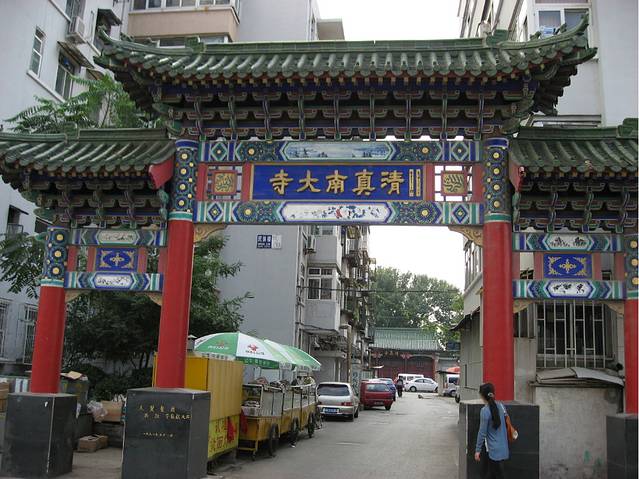 清真南大寺的牌坊下有一个专卖清真小食品的售货车,每天白天都出来,要想吃个零食,来这因该不会空手回去的。
