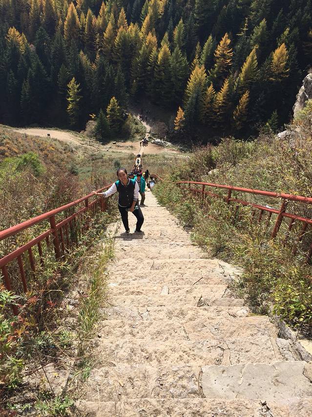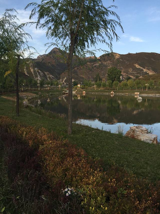 重九重瀑布出来一路向下来到汾河源头景区,虽然已经下午四点了,这里的游人还很多。打听了一下景区情况,我们觉得不进景区,围着门口的小湖走一圈。门票又省了。