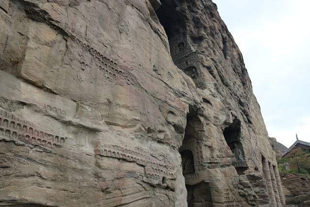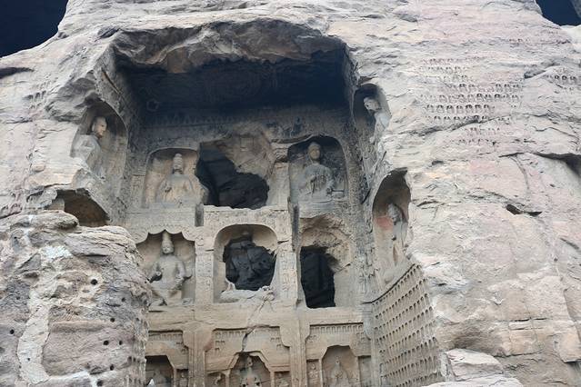 今天是我们在行程中起的最晚的一天...7:30左右起床。老板告诉我们,可以帮我们联系私家车,直接送我们到大同火车站,我俩毫不犹豫的答应了,从浑源到大同火车站大概用了一个半小时。下车后坐游1路,直达云冈石窟门口。买完票,把行李寄存好后,顺利找到了拼讲解的游客,就酱,跟随讲解的脚步,开始游览~