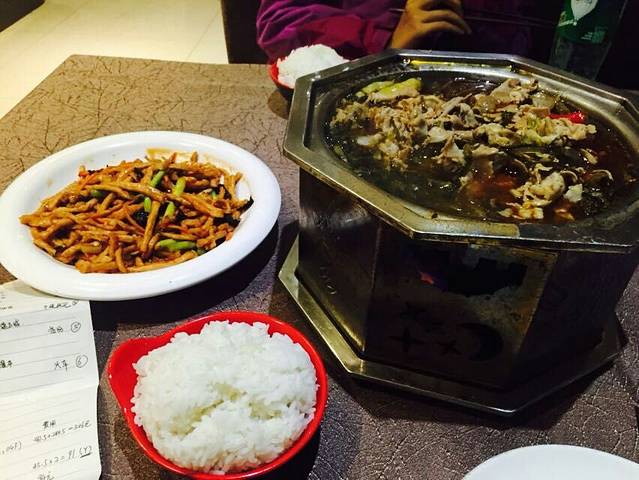 游完悬空寺已经快5点了,我俩已经饥肠辘辘了,打车前往饭店多的地方。一下车就傻眼了,街上基本没有人,好多饭店也都没开,找了好久终于找到了一家,点了酸汤羊肉和鱼香肉丝,饿了一天,终于吃上饭了,实在开心!吃完饭后,回到旅店,洗漱一番,好好休息,准备明天去云冈石窟。