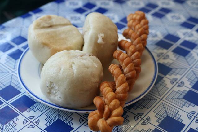 前一天晚上,老板娘热心的告诉我们吃早饭的地方,我俩早上睁开眼睛就冲了去,好不容易,能安静的吃顿早饭
