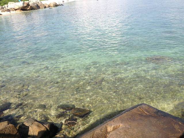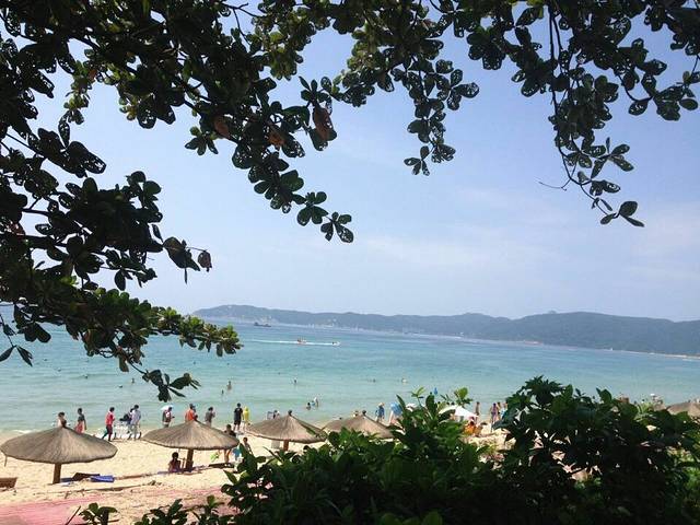 到达大东海 水质比三亚湾好 不过人也比三亚湾多 下午四五点 就有很多人在这里游泳里 水深且蓝