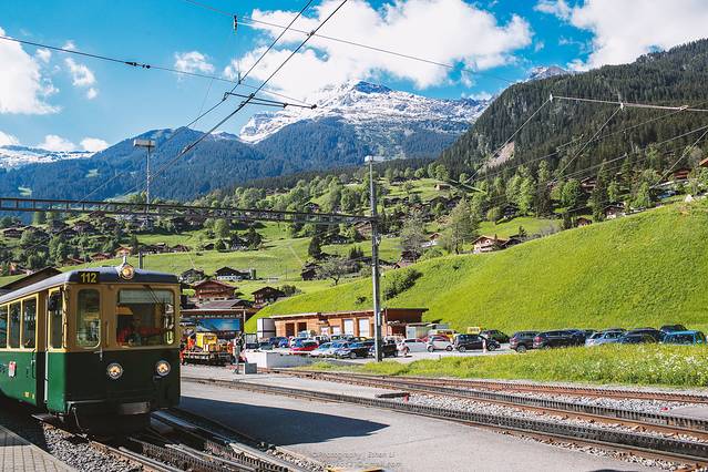 上山的路途中,会俯览整个格林德瓦,非常美,可惜在下坐错了边,只能默默的看看山。。正确的应该是坐火车前进方向的右边。