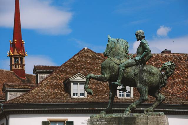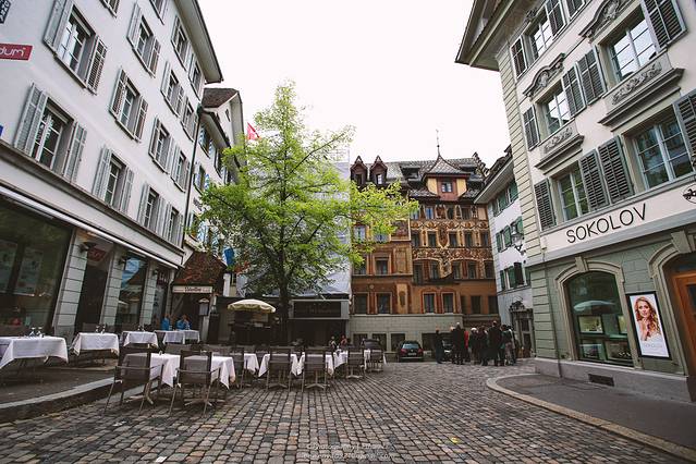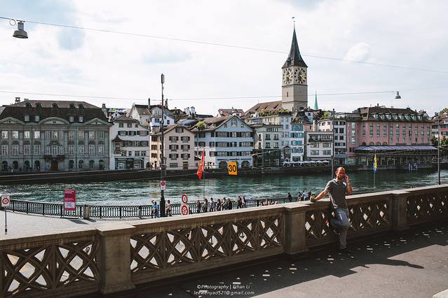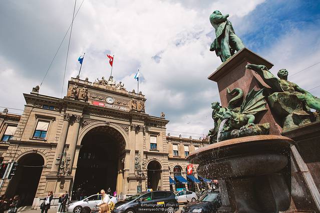 火车站出来,正门对向的就是班霍夫大街。不巧的是今天是周日,街上所有店都关门休息,留下了一个遗憾。不过正因为如此,路上除了超跑的发动机外,很是清静,不知道平时是不是也是这样。说到超跑,苏黎世是全欧洲最富裕的城市,满街超跑不说,还个个都喜欢地板油,我这半日游留下最深的印象就是发动机轰鸣声。。。