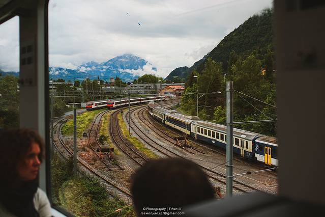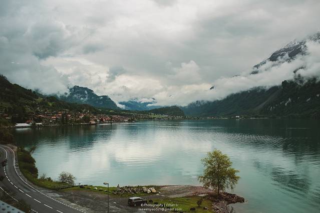 快到因特拉肯了,这个被图恩湖和布里恩湖夹在中间的湖间镇,在火车上就把我美醉了。