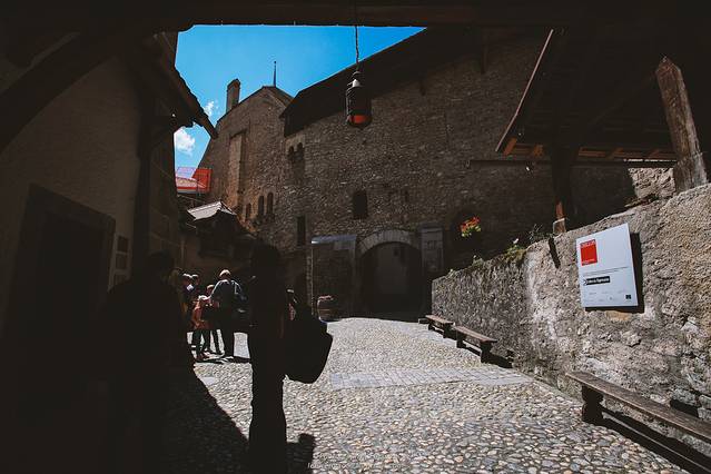 城堡大致的路线就是先从地下酒窖开始,然后跟着指示一层一层参观,不断往上爬,最后就会到城堡顶,可以俯览蒙特勒。