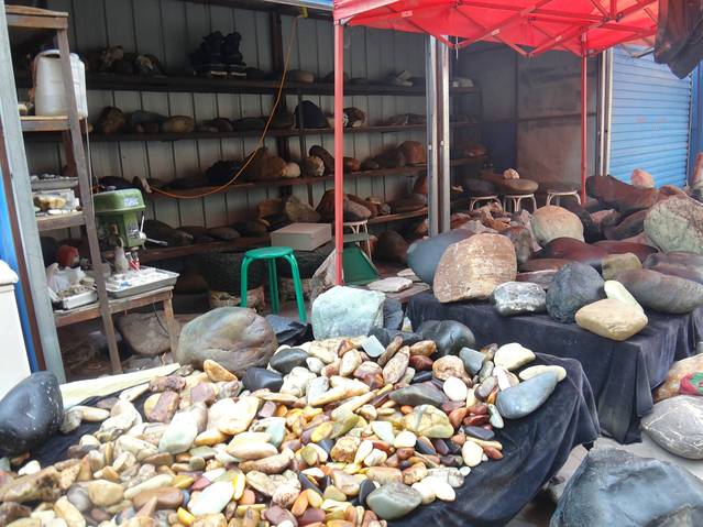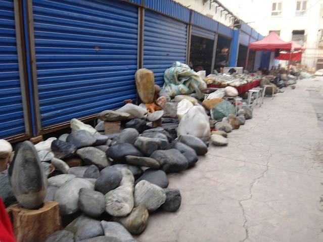 转到步行街时,在这个街道的最里面我们发现了很多很多石头,据同学说莎车有专门的玉石巴扎,这点不算什么。。要知道这些都是一块一块的捡回来的