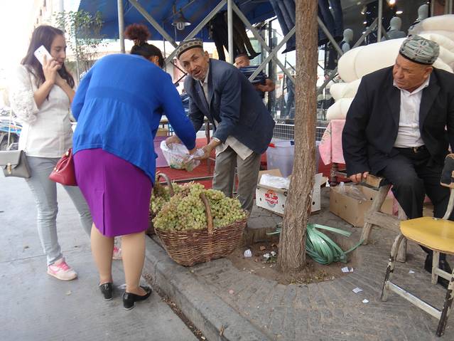 工艺店、清真寺、维吾尔人、水果摊、游客是这个老街中的永恒角色