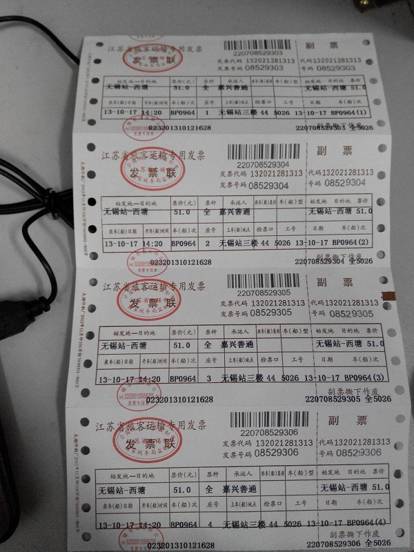 在代售点买了无锡--西塘的汽车票,51元+5元手续费/一人