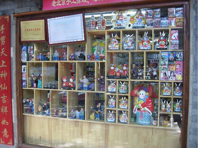 卖老北京手工艺品的,泥塑为主,“兔儿爷”很可爱!