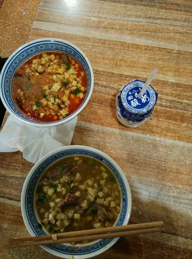 到西安的第一顿晚饭打车直奔回民街,真切认识到人山人海啊,脏和乱是第一印象,满街的泡馍,大家都在抢,我们挤进了一家生意蛮好的泡馍店,点了招牌羊肉泡馍和小炒,味道很奇怪。出了店,都没吃饱,又买了肉夹馍,腊羊肉的味道也很怪,可能和亲眼看见老板把猩红的羊肉到锅里,实在食不下咽。饮食不跟风,购买需谨慎啊!!