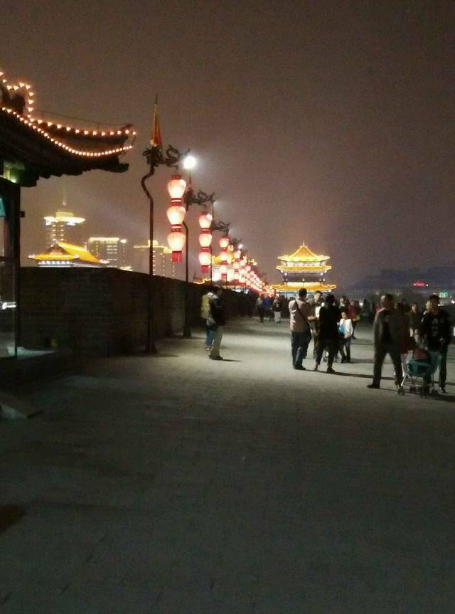 夜游古城墙,别有一番滋味。国庆还是票价贵,从南门上城墙54一位,城墙上租自行车90一小时,烧钱啊。。。。城墙保存完好,夜景宏达,如厕方便,值得一去。