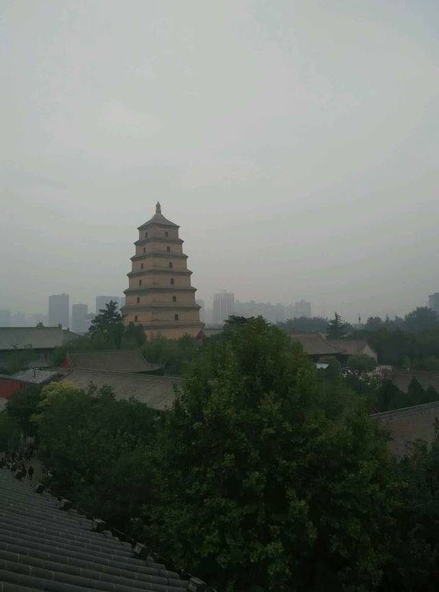 在空中餐厅拍摄的大雁塔,脱离人群更显伟大空灵