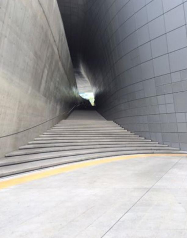 包围DDP曲线形建筑的洞窟阶段!风格很神秘嘛,达到那上面,好像抵达了天堂!