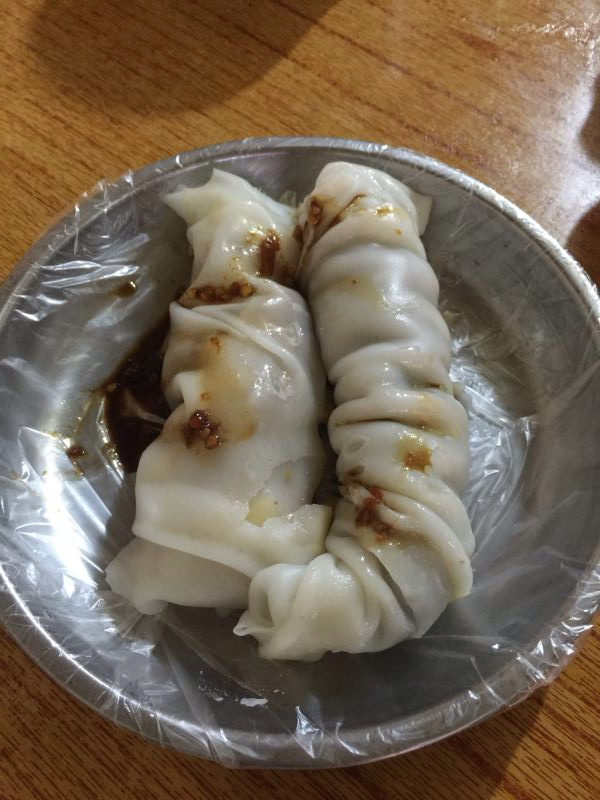 地方小吃卷筒分,其实就是肠粉里面包裹了萝卜干,榨菜等咸菜,味道不错,肠粉比较滑,加上酱油或者辣椒,味道棒棒的